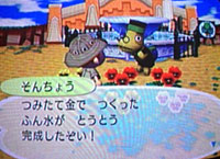 コトブキ村長が出来上がった噴水の前でウキウキと「セレモニーじゃ」と言ってますが、別に何かをする訳じゃないみたいです(笑)