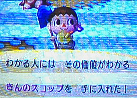 ゲーム用のテレビはいまだにブラウン管なので、映像がちょっとだけ湾曲して見辛いですが、ちゃんと金のスコップです(爆)