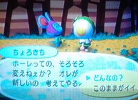 今日も何時もの如くぽてぽてとマイアミ村をお散歩していると、ちょろきちくんに話し掛けられました。